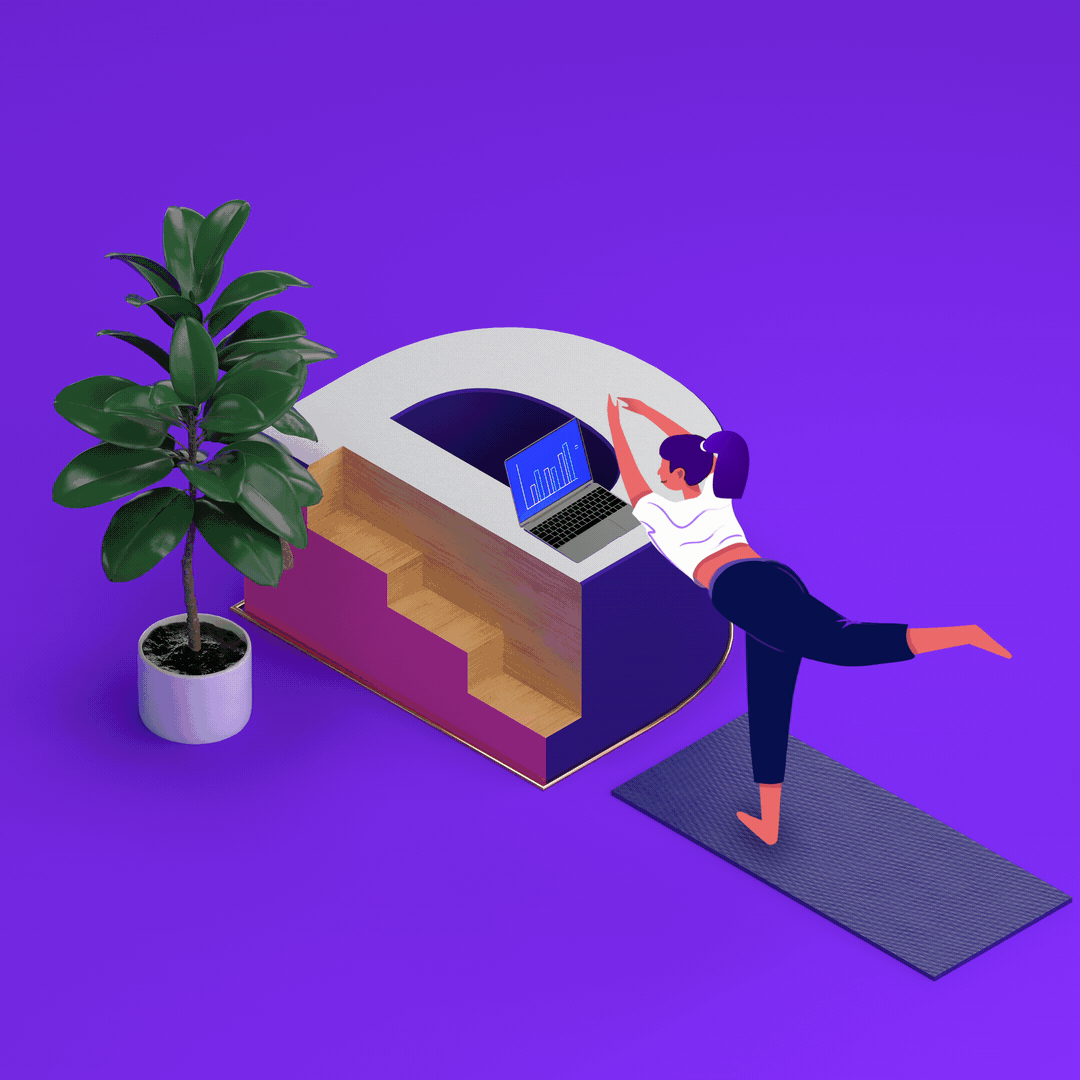 Visually, we used Isometric illustration combining 3D environment to create an office space representation and invites people to look closer at the way they work.
